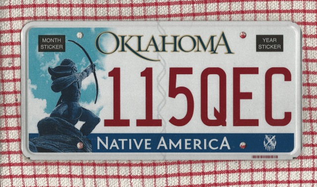 Oklahoma license plate.